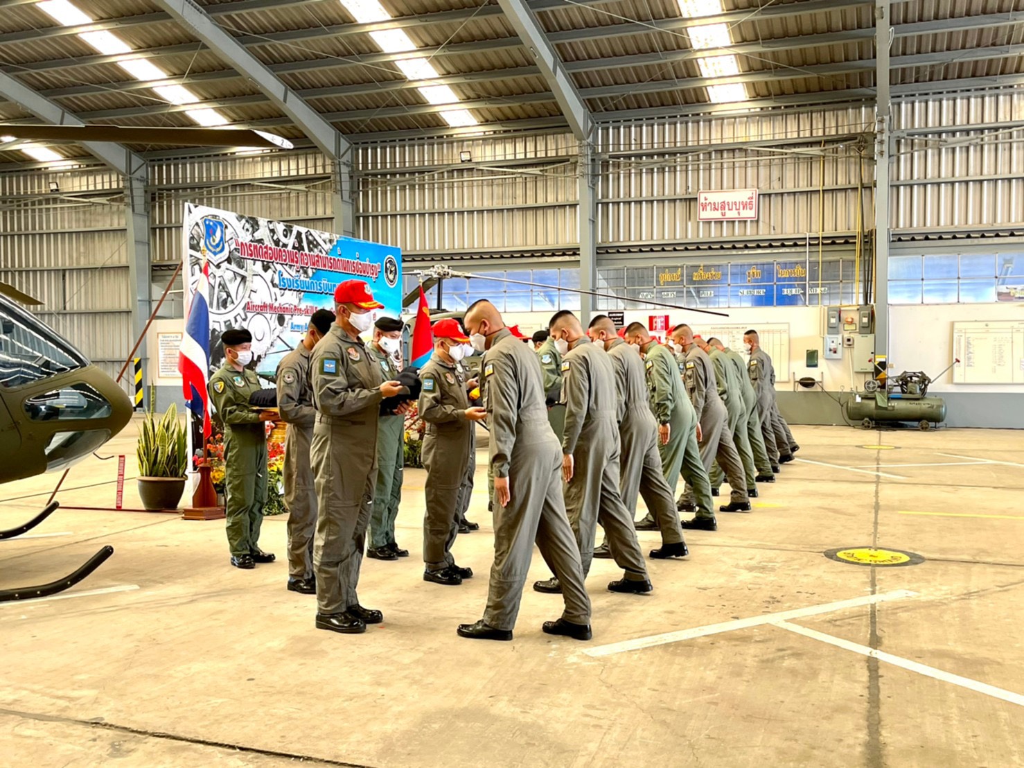 ให้กับผู้ที่ผ่านการทดสอบความรู้ความสามารถด้านการซ่อมบำรุงขั้นต้น (มอบหมวกสีน้ำเงิน)